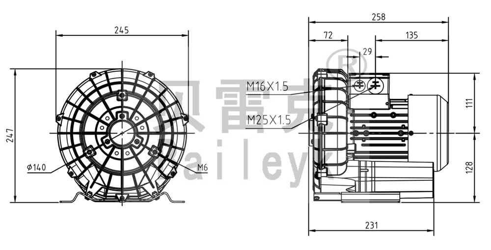 最大風(fēng)量:80m3/h 最大正壓:130mbar 最大負(fù)壓:120mbar 防護(hù)等級(jí):IP55 噪音:53db 重量:10Kg