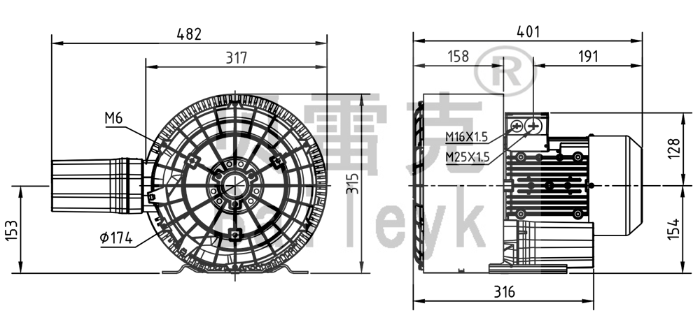 最大風(fēng)量:150m3/h 最大正壓:420mbar 最大負(fù)壓:330mbar 防護(hù)等級:IP55 噪音:66db 重量:27Kg