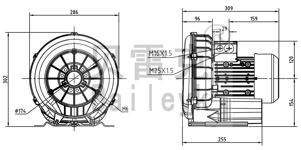 最大風(fēng)量:180m3/h 最大正壓:100mbar 最大負(fù)壓:110mbar 防護(hù)等級:IP55 噪音:64db 重量:17Kg