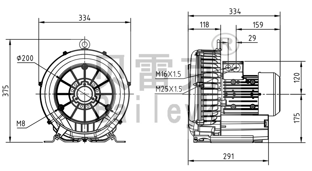 最大風量:270m3/h 最大正壓:110mbar 最大負壓:120mbar 防護等級:IP55 噪音:65db 重量:23Kg